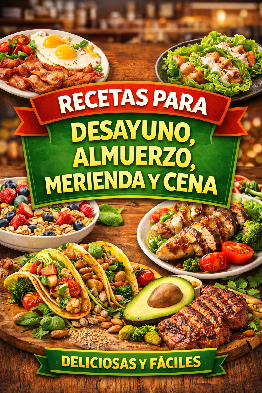 Descubre una selección deliciosa y práctica de recetas para cada momento del día. Con “RECETAS PARA DESAYUNO, ALMUERZO, MERIENDA Y CENA”, tendrás opciones fáciles, rápidas y nutritivas para variar tu menú, ahorrar tiempo y disfrutar comidas caseras llenas de sabor. 🍞